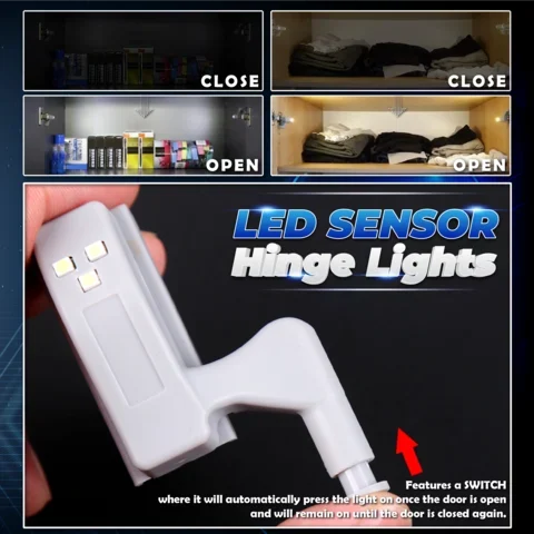 - Easy to install and convenient to use, after installing it on your cabinet hinge with battery, when opening the cabinet, the lamp will turn on automatically. When closing the cabinet, the light turns off.